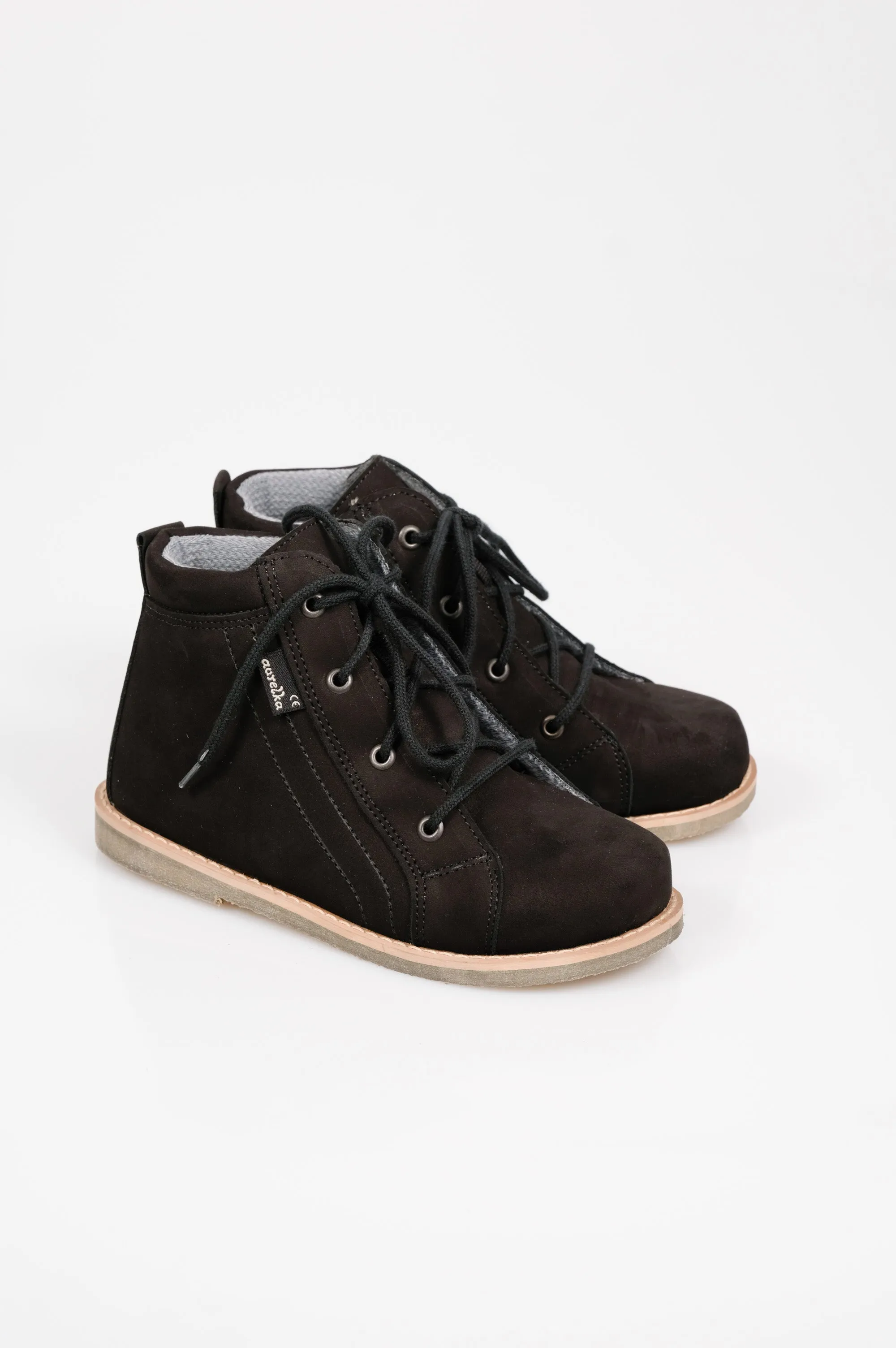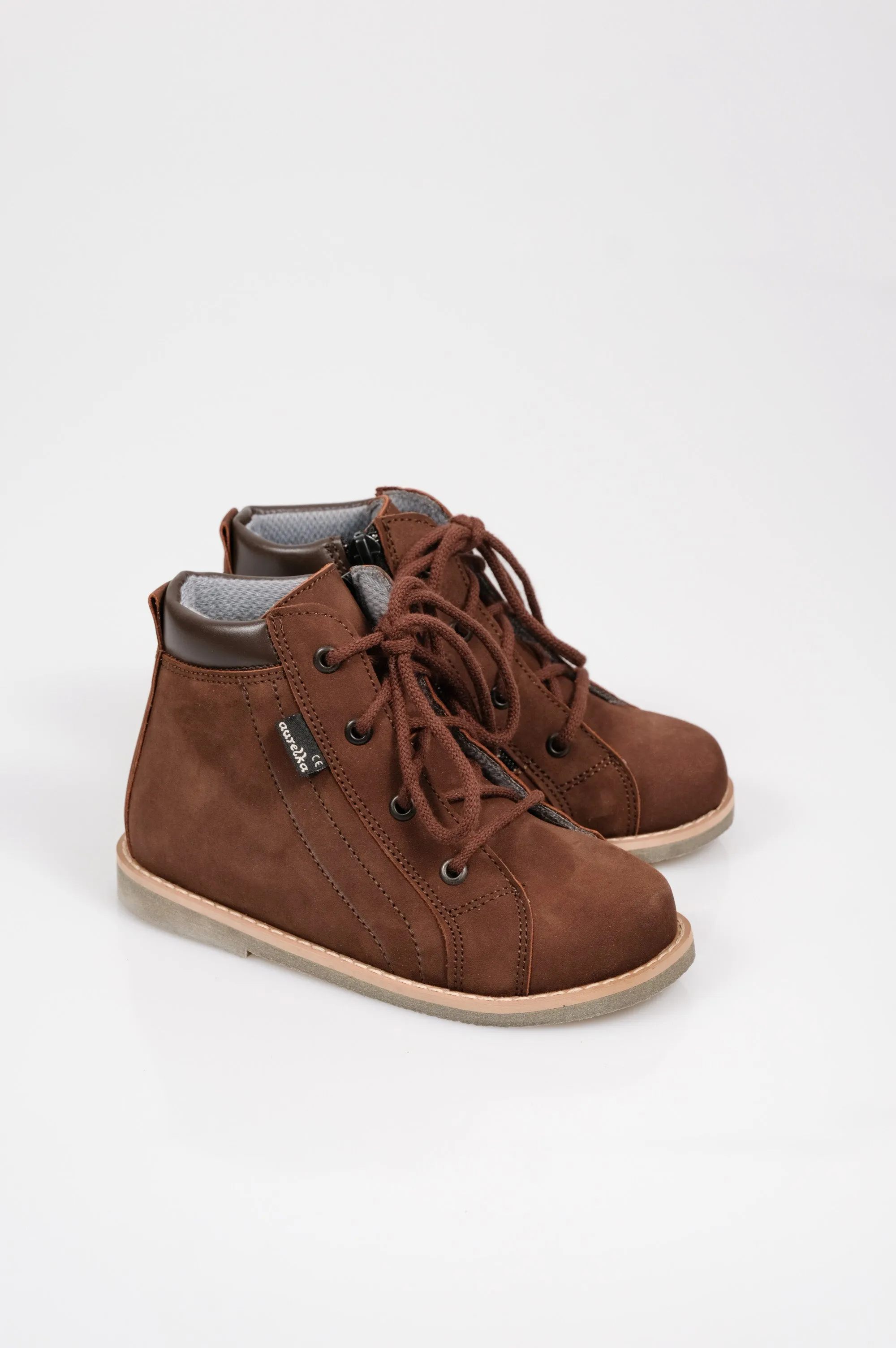 Obuwie zawiera wmontowany na stałe element podnoszący łuk podłużny (supinacja) oraz korytkowe osadzenie pięty (w celu ustabilizowania pięty) Wysokość supinacji ok 1 cm. Model ten jest wyposażony w wygodny suwak z boku ułatwiający zakładanie bucików.