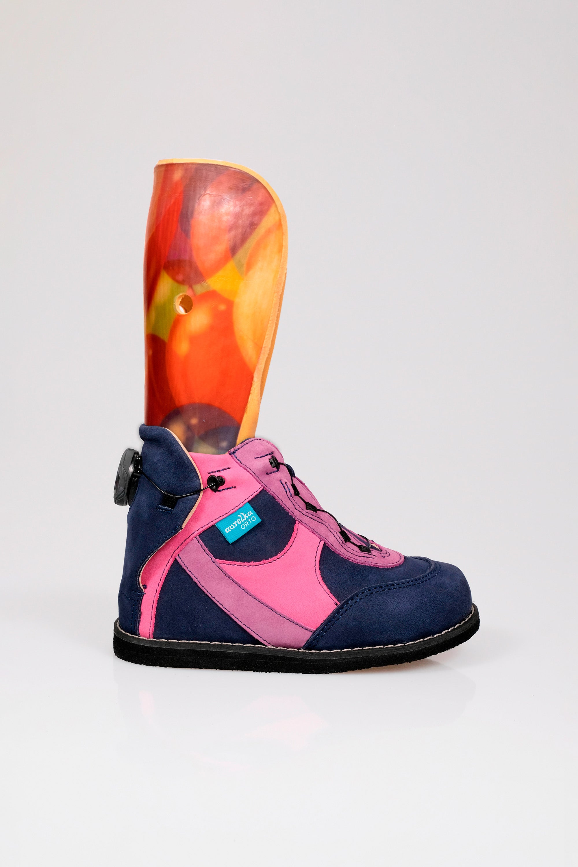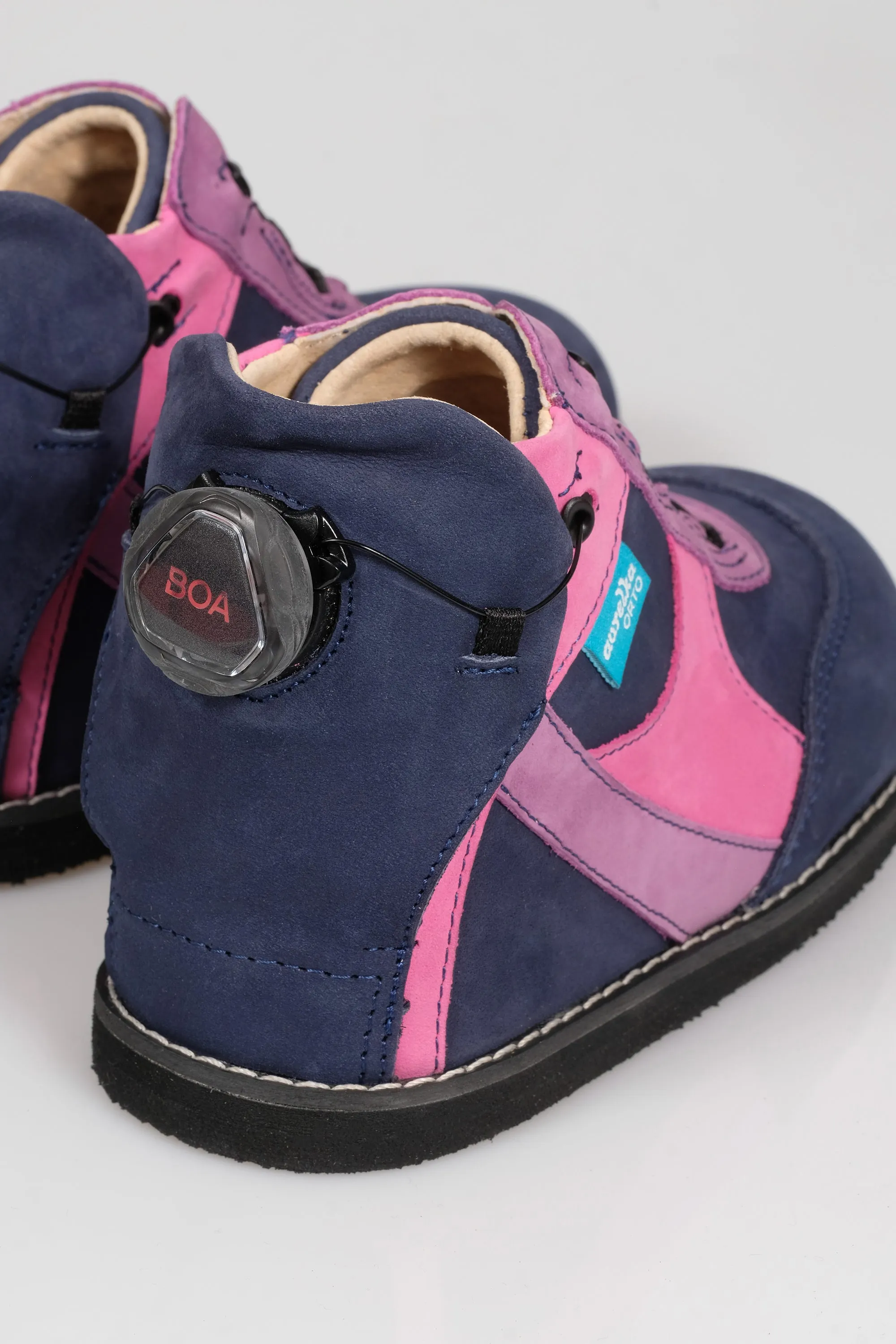 Model z otwartą piętą, który ułatwia osobom niepełnosprawnym używanie w najprostszy i bezpieczny sposób obuwia w życiu codziennym. Wiązanie typu Boa nie ślizga się i zapewnia najwyższy komfort użytkowania. System ten umożliwia łatwą obsługę jedną ręką i zapewnia równomierne naprężenie na całej stopie, co prowadzi do idealnego dopasowania obuwia do stopy. System Boa został też zaprojektowany specjalnie dla dzieci noszących ortezy, dzięki czemu mogą łatwo założyć i zdjąć obuwie. Przy tworzeniu kolekcji firma Aurelka skorzystała z wieloletnich doświadczeń w produkcji butów dziecięcych, jak również z wiedzy specjalistów z zakresu konstrukcji i wymagań obuwia profilaktycznego.